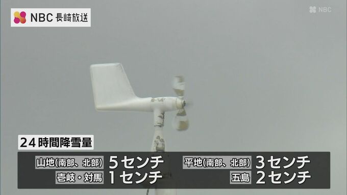 10日午前6時までの24時間で南部・北部の山地で5センチ、南部・北部の平地で3センチ、五島で2センチ、壱岐・対馬で1センチの雪が降ると予想されています。