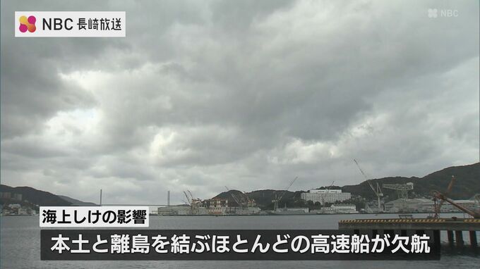 また海上しけの影響で本土と離島を結ぶ高速船のほとんどが欠航しています。