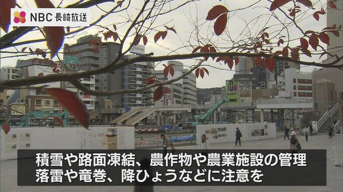 長崎地方気象台は、積雪や路面凍結による交通障害、農作物の管理、激しい突風やひょうなどに注意するよう呼びかけています。