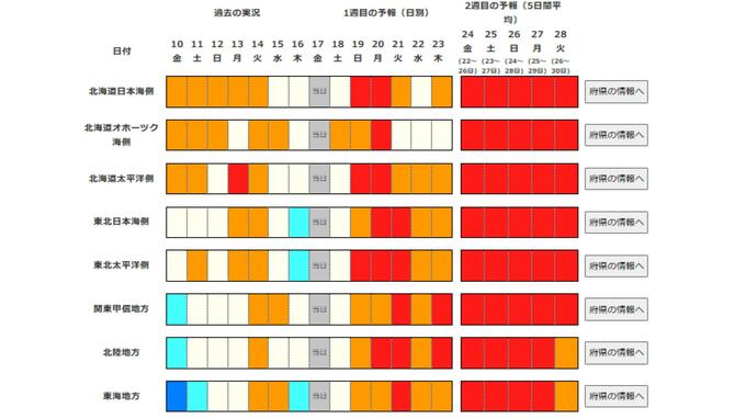 影響を受けにくくなるため高い日が多く、20日頃と22日頃からはかなり高くなる見込みです。