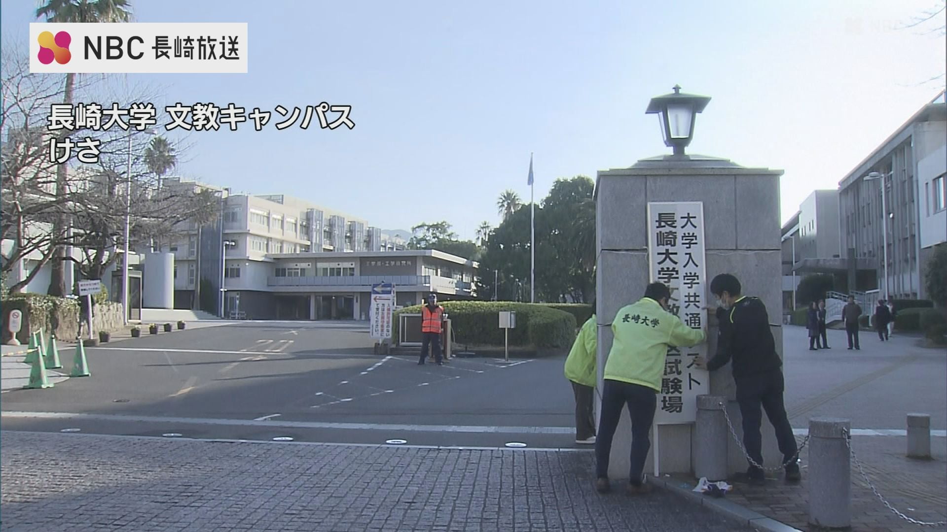 長崎県内で最も多い2500人あまりが受験予定の長崎大学文教キャンパスでは17日朝、大学の職員が受験番号が書かれたシールを机に貼ったり、試験のスケジュールを確認したりと、会場の準備が行われました。