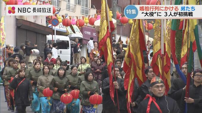 今月29日から始まる「長崎ランタンフェスティバル」メインイベントのひとつで30年以上続いているのが「媽祖行列」です。この「媽祖行列」で中心的な役回りを担うのが「千里眼(せんりがん)」「直庫(てっこ)」「順風耳(じゅんぷうじ)」の3人です。この役を、今回は長崎商工会議所青年部の3人が務めることになりましたその理由と、本番に向けて練習に取り組む3人を取材しました。