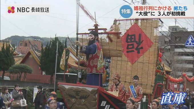 「直庫」は、龍を彫刻した棒を使い悪魔を振り払う媽祖行列の祭官です。