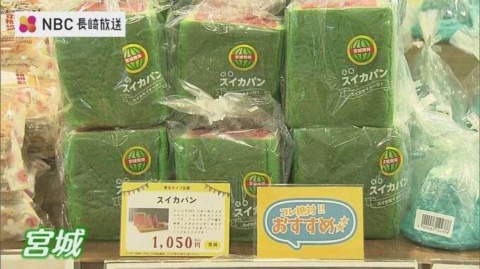 インパクト大!SNS映え間違いなしの宮城『スイカパン』、真っ赤な断面にチョコの種が散りばめられています。