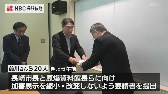 2人は23日午前、市長と原爆資料館の館長らに加害展示を縮小や改変しないよう求める要請書を提出しました。