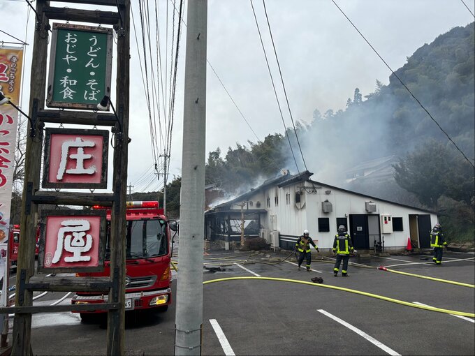 火事があったのは佐世保市江迎町赤坂にある庄屋本店で、26日午後2時半ごろ「屋根から炎がみえます」と店の従業員から消防に通報がありました。