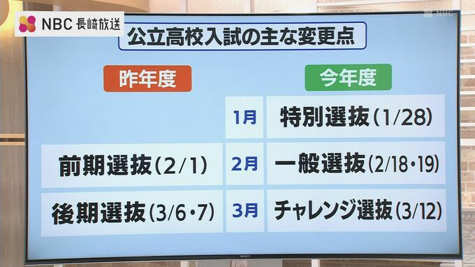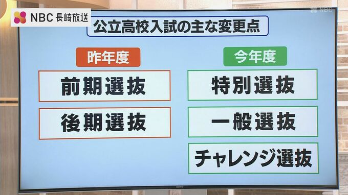 今年から長崎県の公立高校入試は、「特別選抜」「一般選抜」「チャレンジ選抜」の3つに変更されました。
