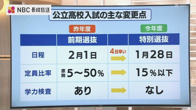 長崎県内の多くの公立高校では、28日に「特別選抜」が行われました。これは従来の「前期選抜」に代わって新たに設けられた選抜方式です。長崎東高校では、18人の受検生が面接やプレゼンテーションに挑みました。