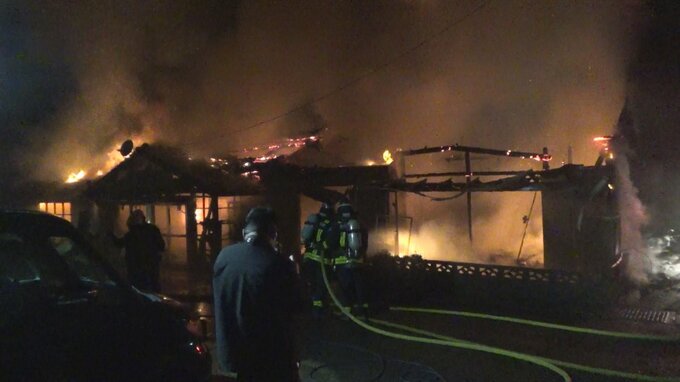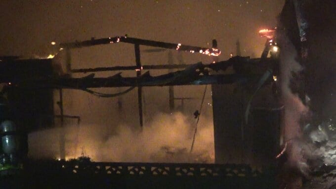 30日の深夜、長崎県佐世保市で住宅2棟が全焼する火事がありました。この火事で高齢の女性が軽いやけどをしました。
