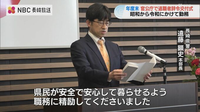 退職者の多くは昭和50年代後半から平成初期に入庁し、雲仙普賢岳の噴火災害やバブル崩壊、新型コロナの流行など激動の時代を経験。