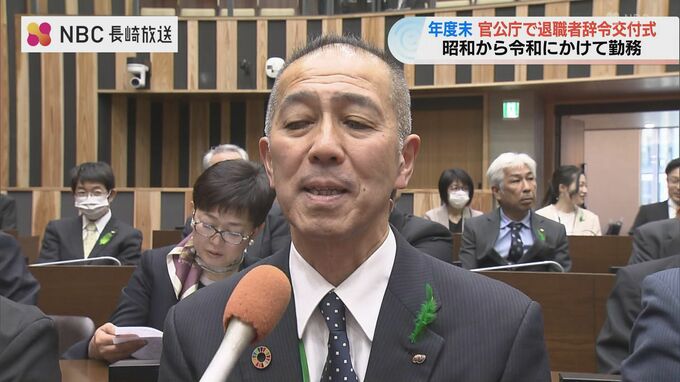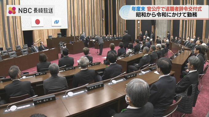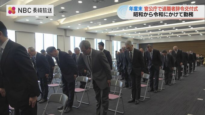 年度末の31日、長崎県内の多くの官公庁で退職者の辞令交付式が行われました。