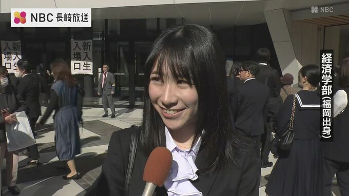 経済学部の新入生「V・ファーレンが好きなので(長崎スタジアムシティでの入学式に)ワクワクします。どんどん新しいことにチャレンジしていきたいと思います」