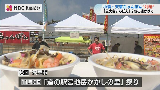 この日の勝敗は持ち越しで、次の対決は11月9日、小浜ちゃんぽんが天草に乗り込みます。今回と次回のアンケート結果などをもとに、2位の座が決まるということです。
