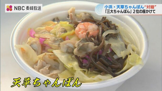 日本三大ちゃんぽんに名を連ねる、長崎県の小浜と熊本県の天草のちゃんぽんが、2位の座をかけて、いざ勝負!
