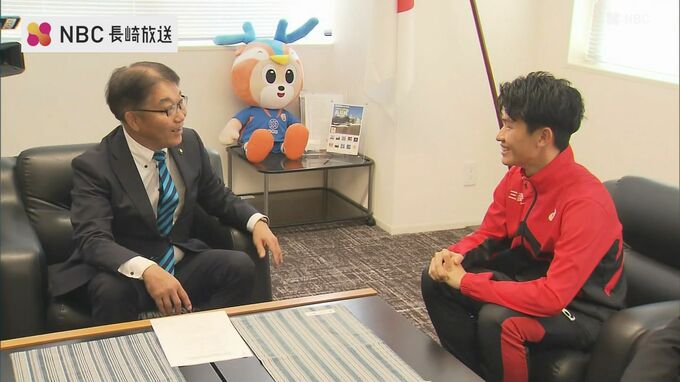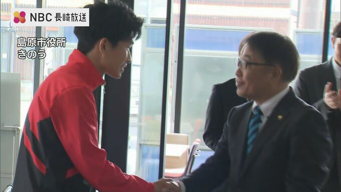 ことし9月、東京で開催される世界陸上男子マラソンの日本代表 近藤亮太選手が、10日地元の島原市を訪れ、市長に代表入りを報告しました。