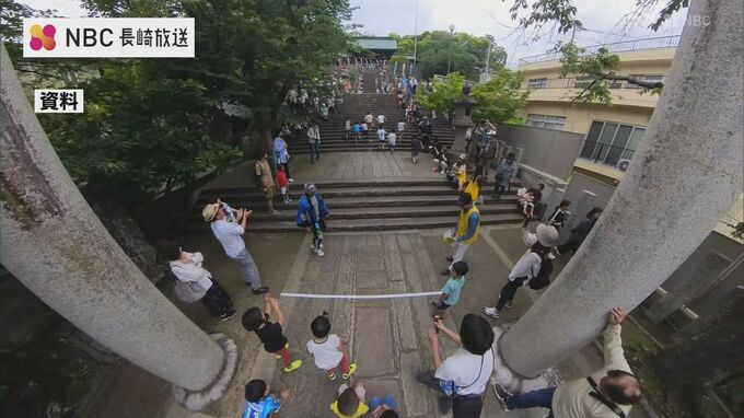 5月5日の「こどもの日」に、長崎市の諏訪神社で行われる恒例行事「長坂のぼり大会」の参加者の受付が13日から始まります。