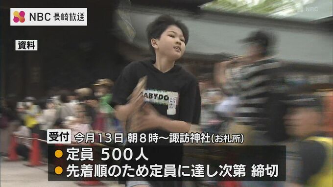 参加者の受付は13日の朝8時から諏訪神社で行われ、定員は500人です。先着順のため、定員に達し次第締め切られるということです。