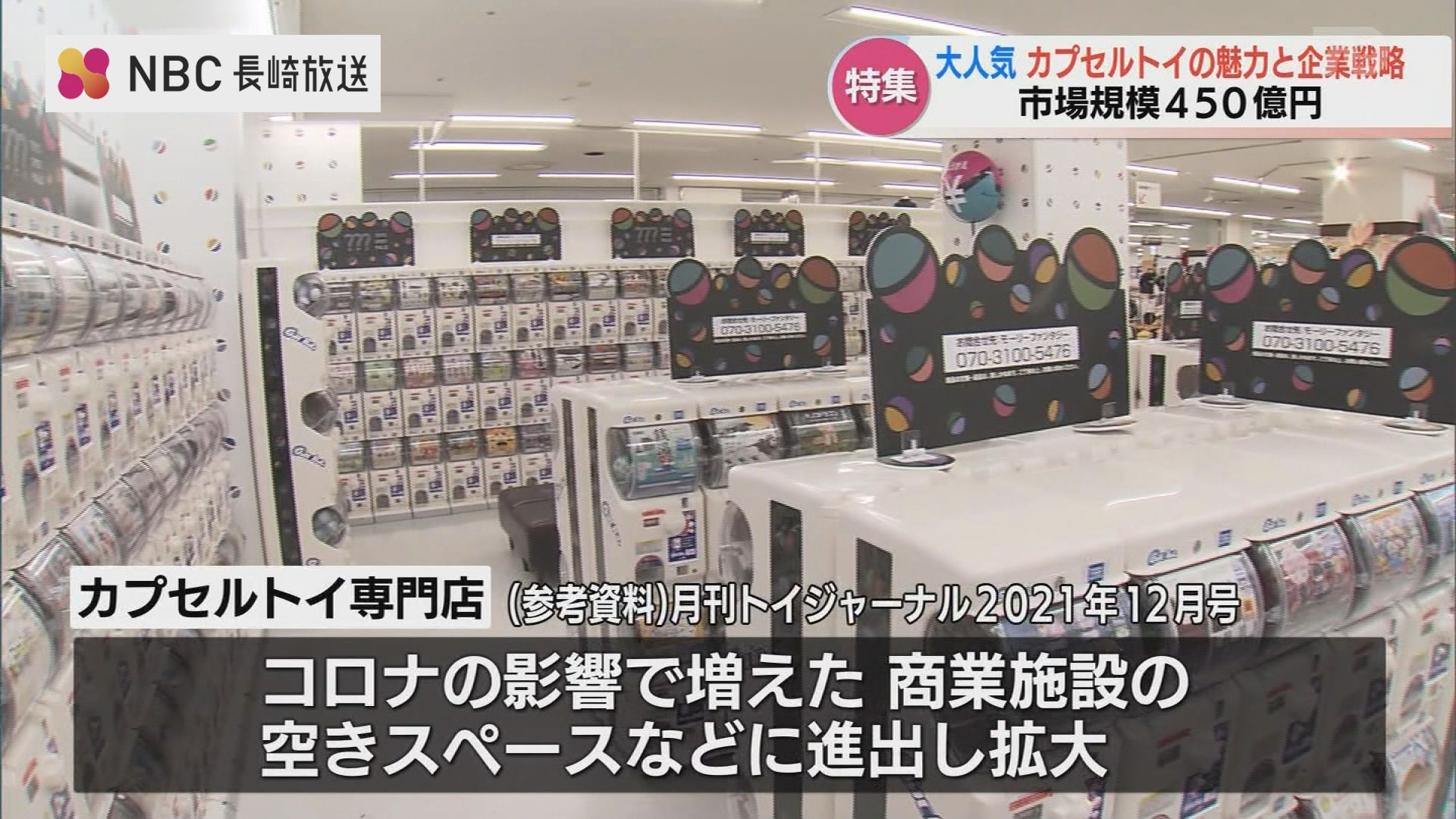 かつては“子どもたちが楽しむもの”というイメージがありましたが、今では“大人たちもはまる”ものも多くあります。カプセルトイは全国的に人気が高まっていて、市場規模は昨年度450億円にまで伸びています。