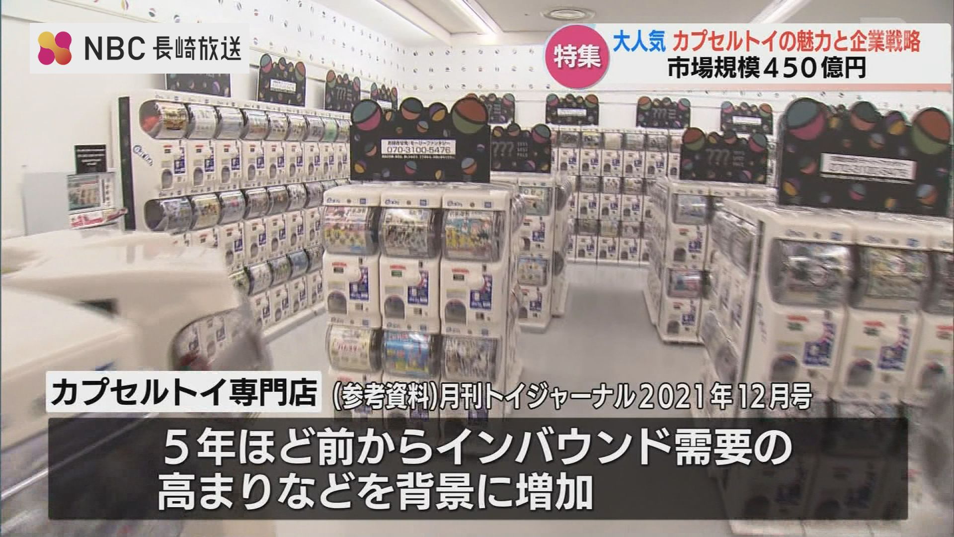 『月刊トイジャーナル(2021年12月号)』によると、カプセルトイは外国人観光客の間で人気となった5年ほど前から“専門店”の数が増加。