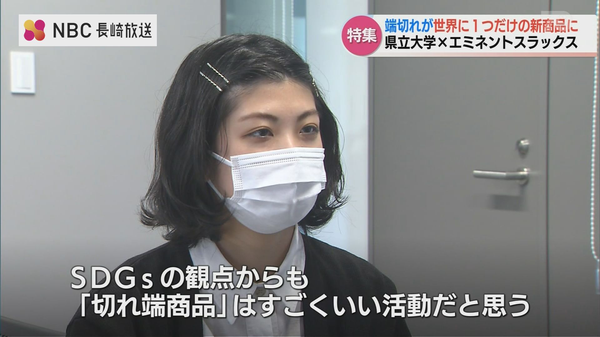 「授業で学んだことを生かせる場が欲しかったというのがあって、起業サークルに入りました。私自身SDGsの観点からも、この“切れ端商品” はすごくいい活動だなと思うので」