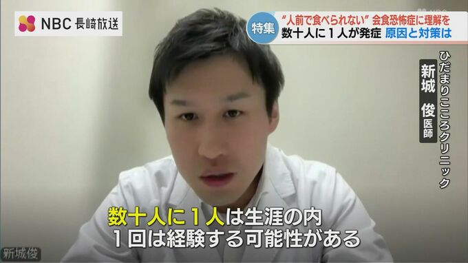「会食恐怖症というのは社交不安障害の一部と考えると数十人に一人は生涯の内一回は経験する可能性がある。思春期や学生時代、新社会人など人間関係に敏感になる時期に発症しやすいといわれています」