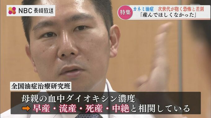 治療法の研究に取り組む全国油症治療研究班は「母親のダイオキシン濃度と流産・死産には相関関係がみられる」としています。