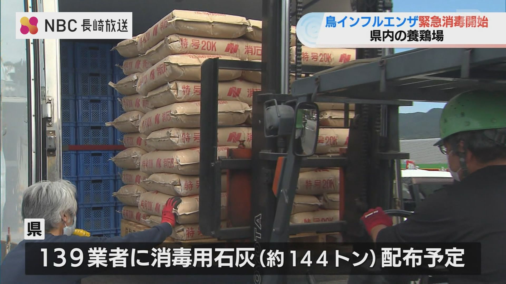 長崎県では今週中にニワトリなどを飼っている139業者すべてに消毒用の石灰144トンを配る計画で、まずは鳥インフルエンザウイルスの『侵入防止』に務めるとしています。
