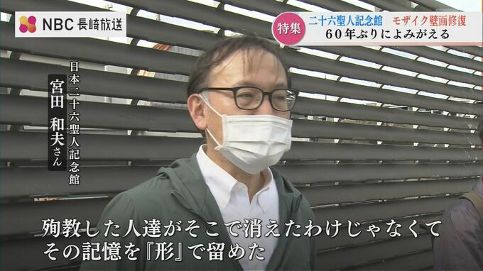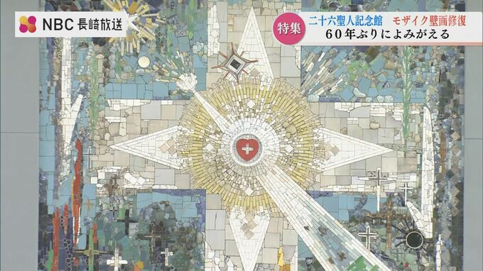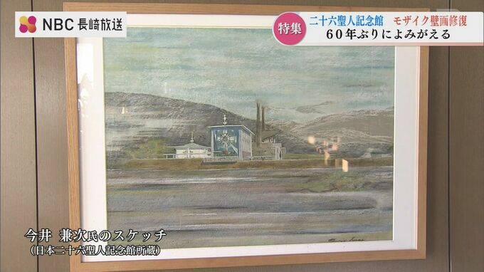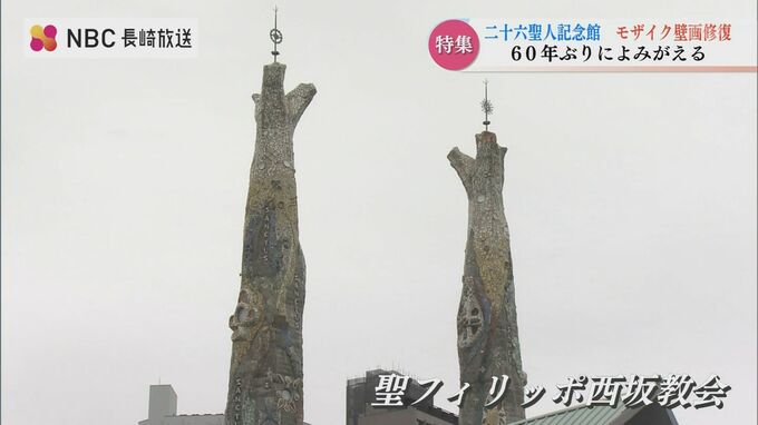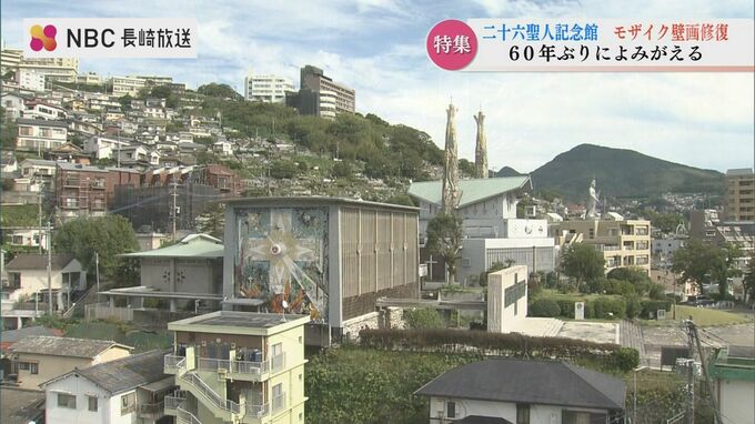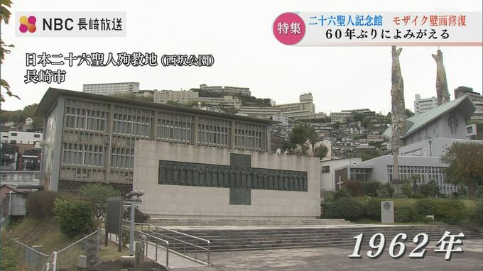 日本二十六聖人殉教の地、長崎市 西坂の丘に60年前に建てられた記念館の壁画が先月、半年間の修復作業を終えました。