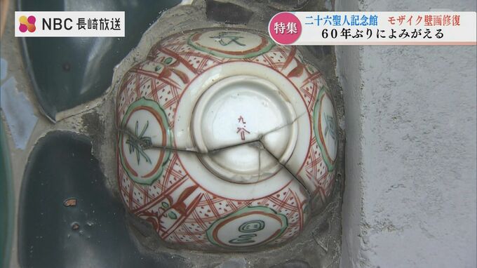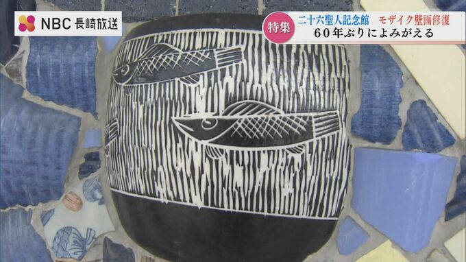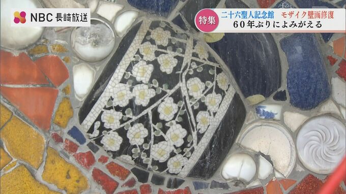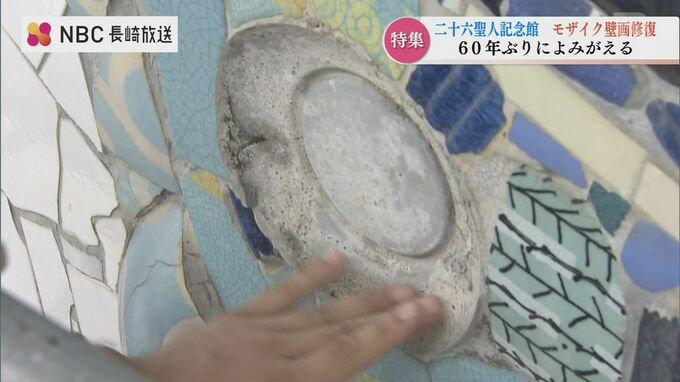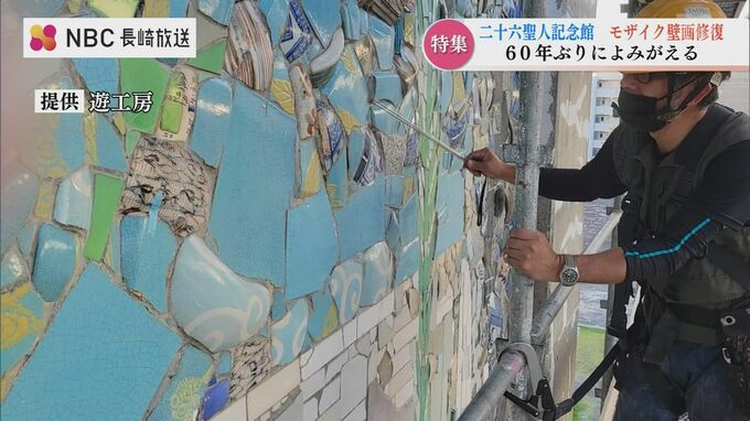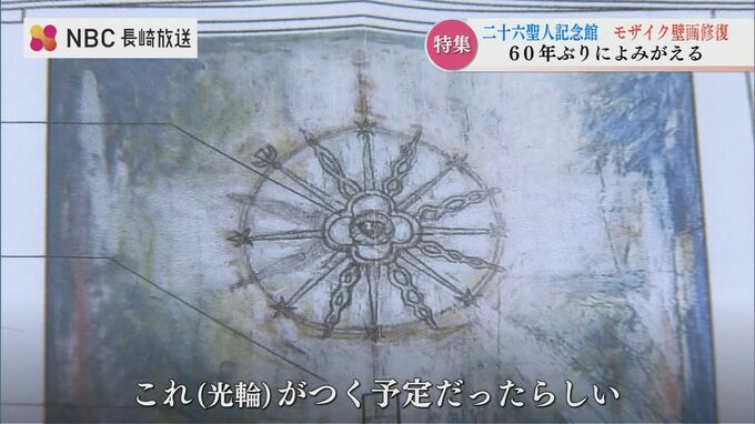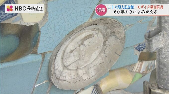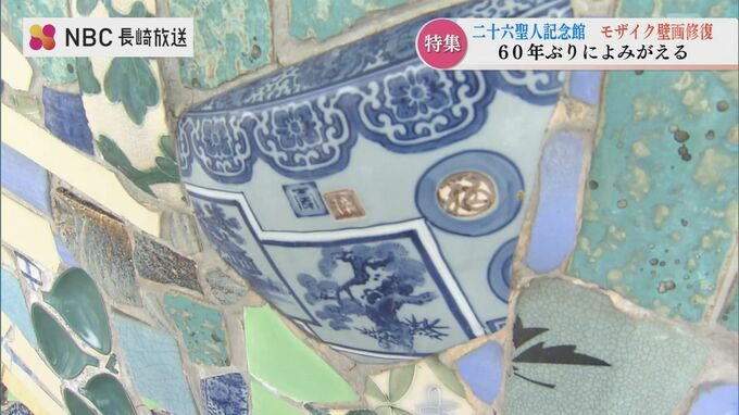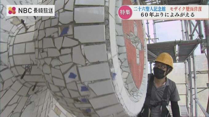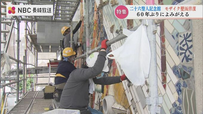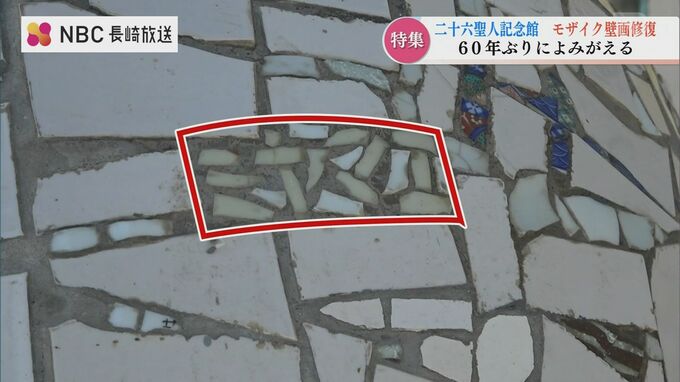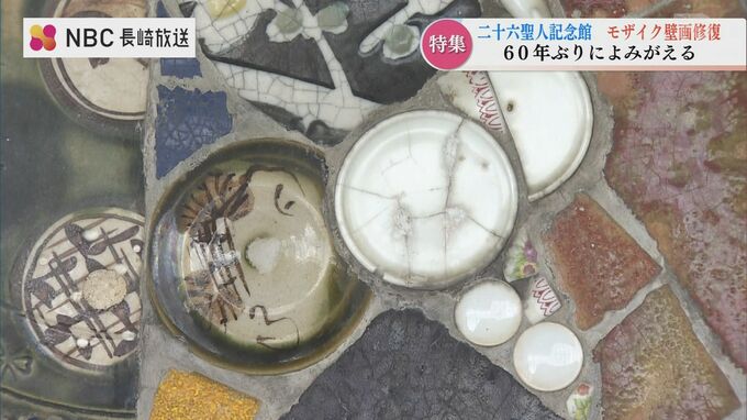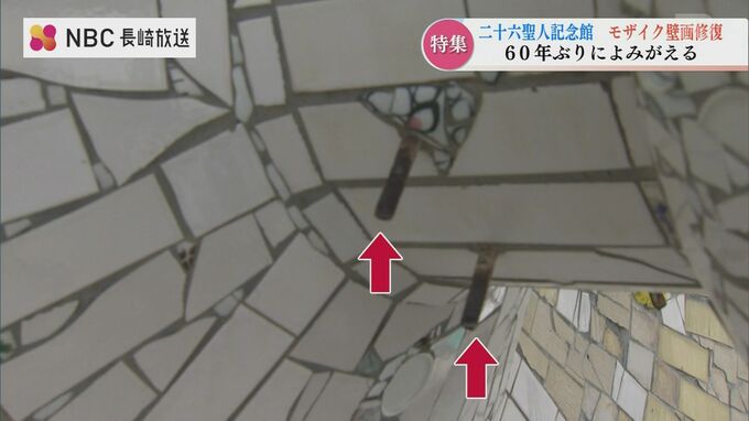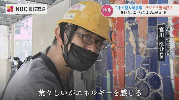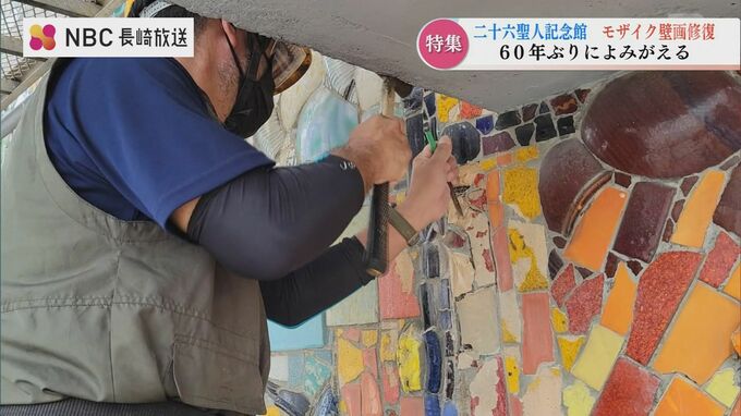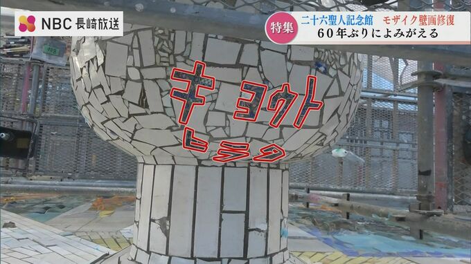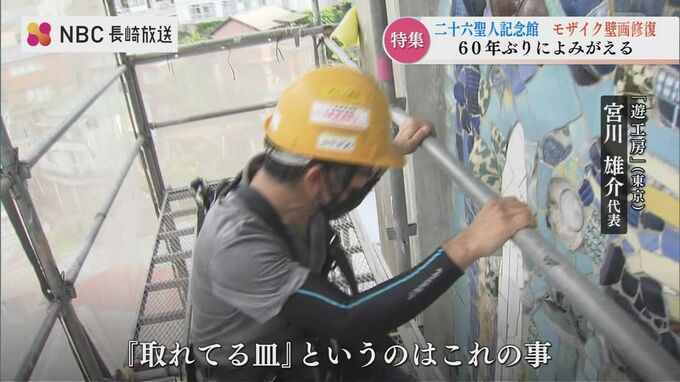 作業に当たるのはモザイクや絵画の専門家たち。60年前の状態に近づける挑戦です。