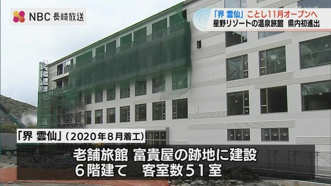 星野リゾート「界 雲仙」11月開業へ 和華蘭文化を施設に取り入れ 2022年4月13日(水) 19:19 国内 国内外で宿泊施設を展開する星野リゾートが雲仙温泉街で建設を進めている温泉旅館を今年11月25日にオープンすると発表しました。星野リゾートの県内開業は初めてで地域に根差した温泉宿を目指します。星野リゾート…