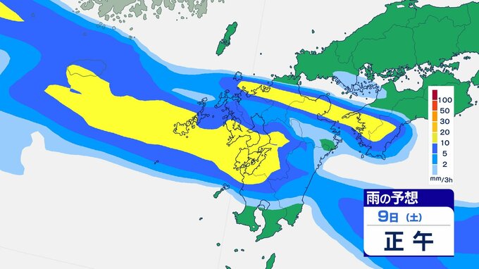 9日午前6時までの24時間に予想される雨の量は、いずれも多い所で、長崎県南部と五島で60ミリ、県北部で40ミリとなっています。