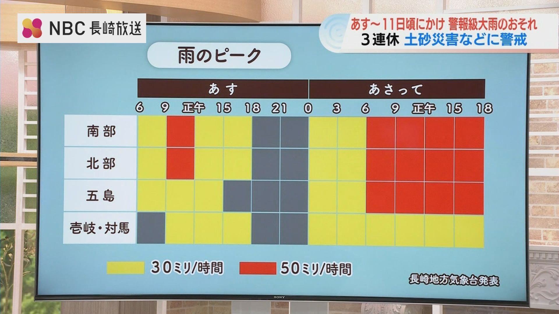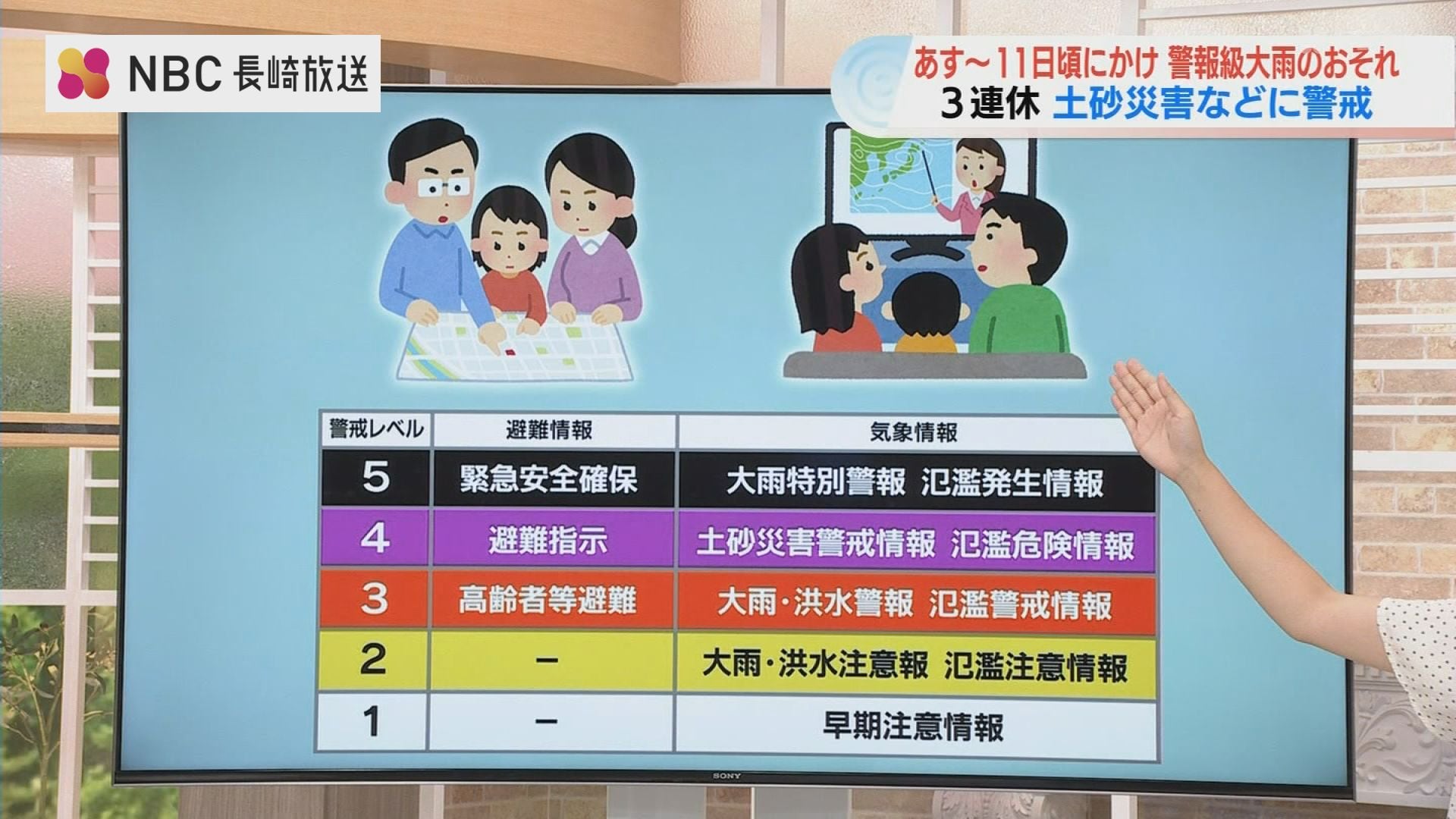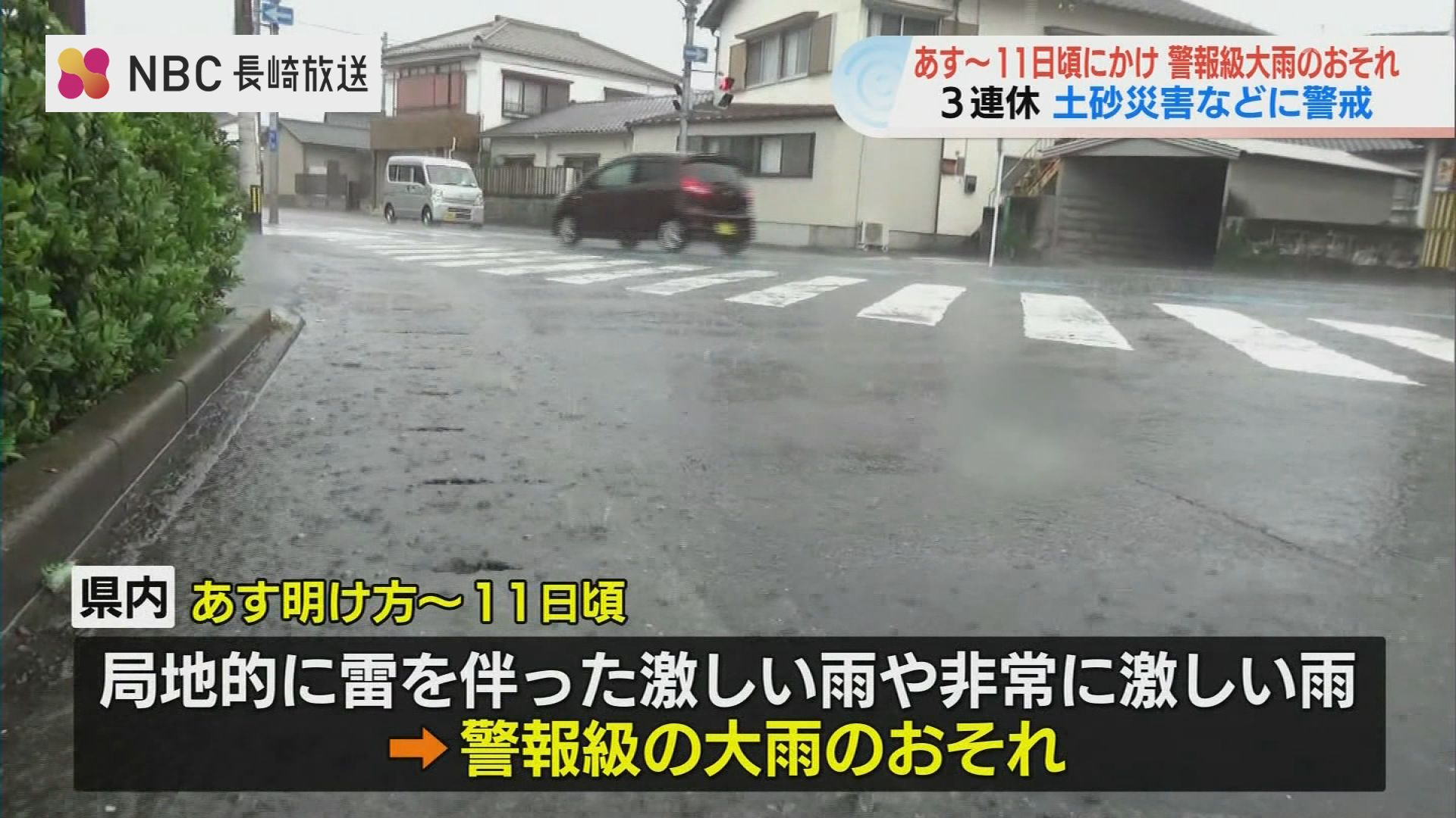 長崎県内は9日明け方から11日頃にかけて警報級の大雨となるおそれがあり、気象台は土砂災害などへの警戒を呼びかけています。