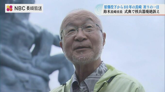 原爆犠牲者を悼もうと平和公園や爆心地公園には朝から多くの市民が訪れ、平和祈念式典では鈴木長崎市長が世界の指導者へ向け、核兵器廃絶の実現に向けた具体的道筋を示すよう訴えました。