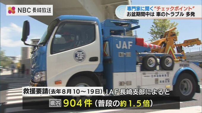 車でのお出かけが増えるお盆の時期。JAF長崎支部によりますと、長崎県内では去年、お盆を含む10日間に900件以上の救援要請がありました。特に目立ったのは高速道路でのタイヤ関連のトラブルです。