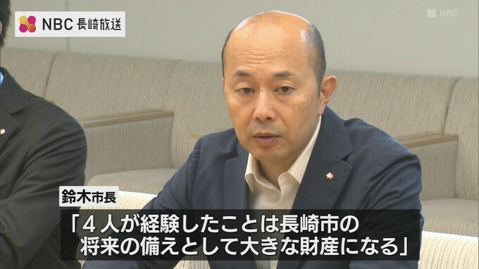 報告を受けた鈴木市長は「4人が経験したことは長崎市の将来の備えとして大きな財産になる」と述べ、職員の労をねぎらいました。