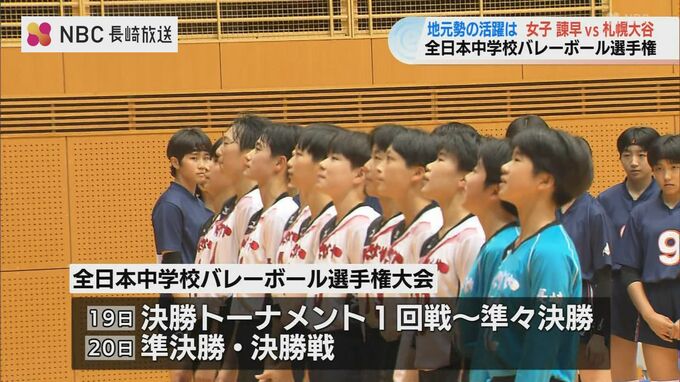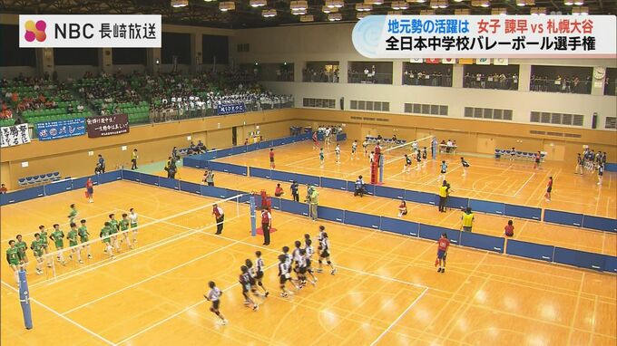 全国の代表校が集まる全日本中学校バレーボール選手権の試合が18日から諫早市と大村市で始まり、長崎県勢も地元の声援を背に試合に臨みました。