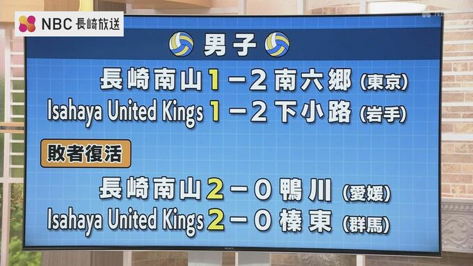 男子は、長崎南山と諫早ユナイテッドキングスが出場。両チームとも初戦で敗れたもの敗者復活戦を勝ち上がり、決勝トーナメント進出です。