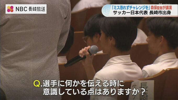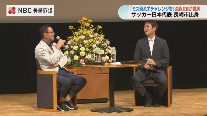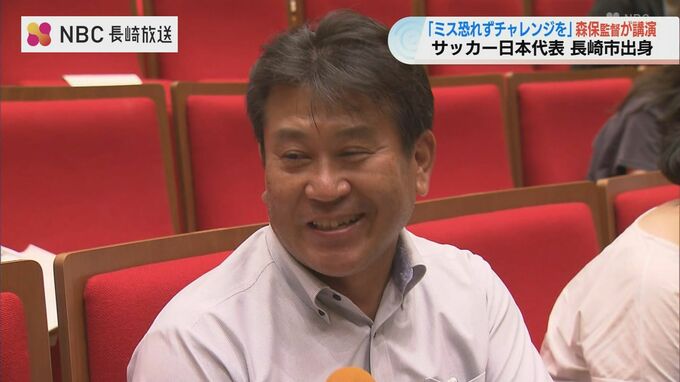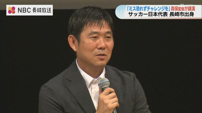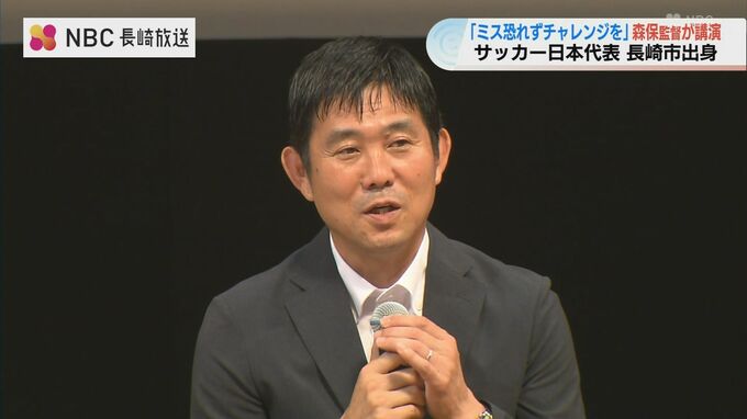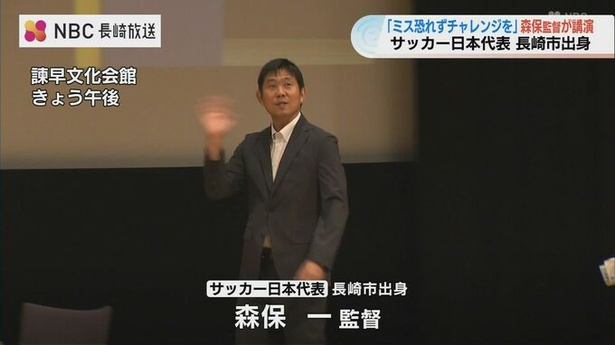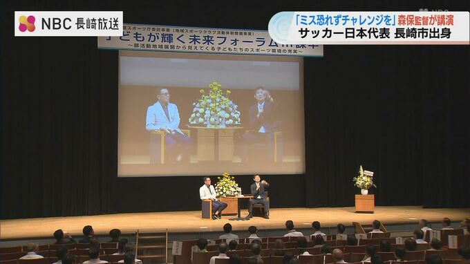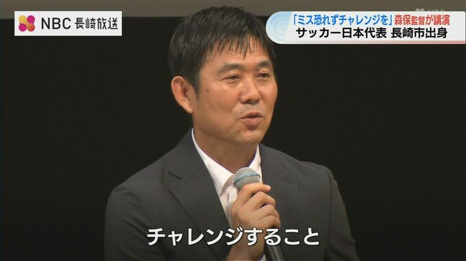 サッカー日本代表の森保一監督が、長崎県諫早市で子どもとスポーツをテーマに講演し、選手や指導者らを前にチャレンジすることの大切さを語りました。
