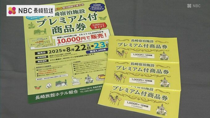 争奪戦は必至!レストラン ビアガーデン おせちなどにも利用可能「長崎宿泊施設プレミアム商品券」 あすから発売 2025年8月21日(木) 19:53 国内 長崎市内のホテルのレストランやビアガーデンなどで使えるお得な商品券「長崎宿泊施設プレミアム付き商品券」が、22日と23日の2日間、市内のホテルや旅館で販売されます。1冊1万円で1万2千円分利用できる「長崎宿…