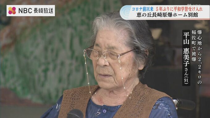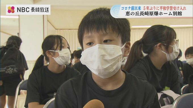 およそ170人の被爆者が暮らす長崎市の恵の丘長崎原爆ホーム別館で、子どもたちを受け入れての平和学習が5年ぶりに行われました。