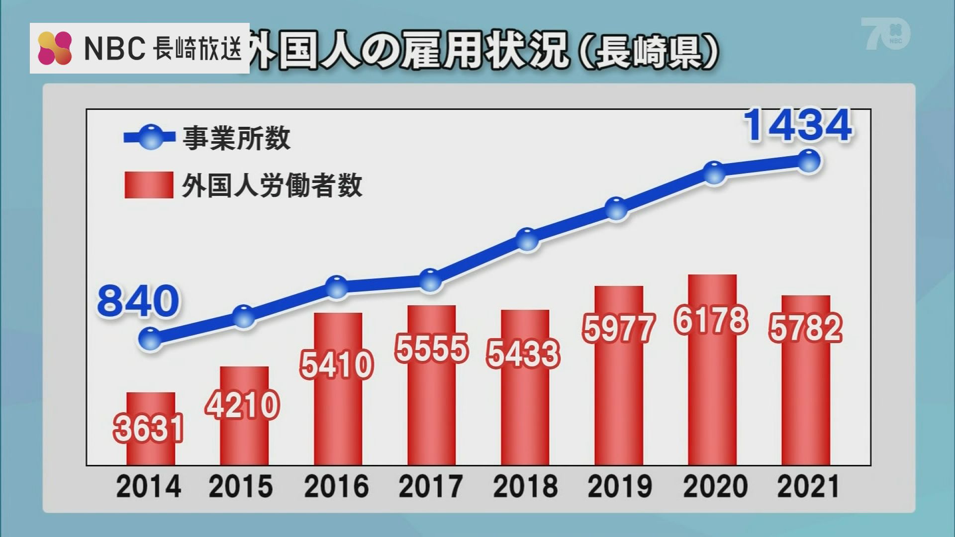 彼らの様に長崎県内で働く“外国人労働者”の数は年々増加傾向にあり、外国人を雇用している事業所の数も増加しています。