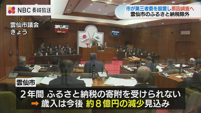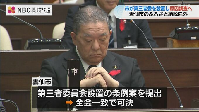 ふるさと納税で費用基準を超える違反をしたとして対象自治体の指定を取り消された雲仙市で17日、臨時の市議会が開かれ、原因などを調査する第三者委員会設置の条例案が可決されました。