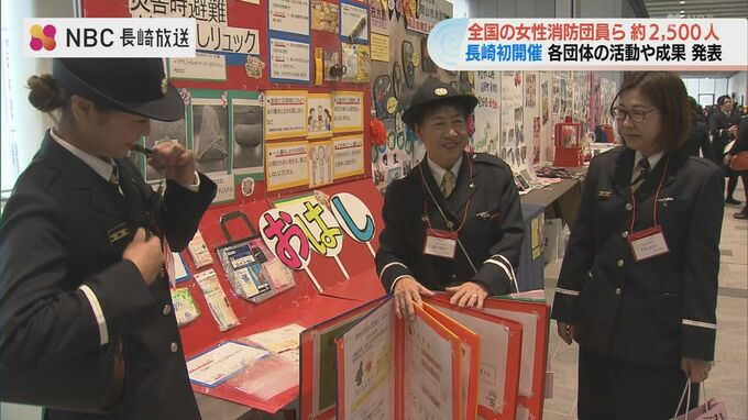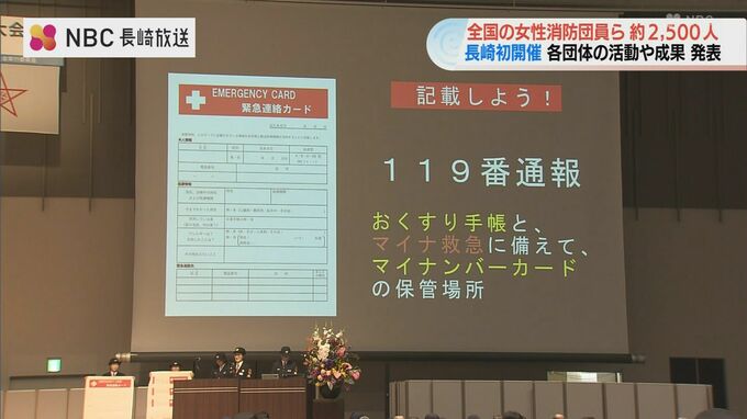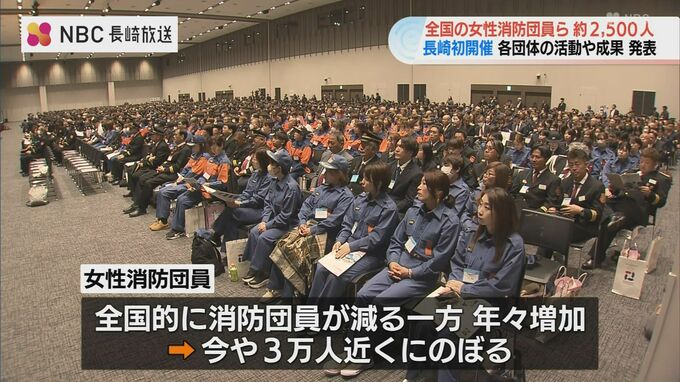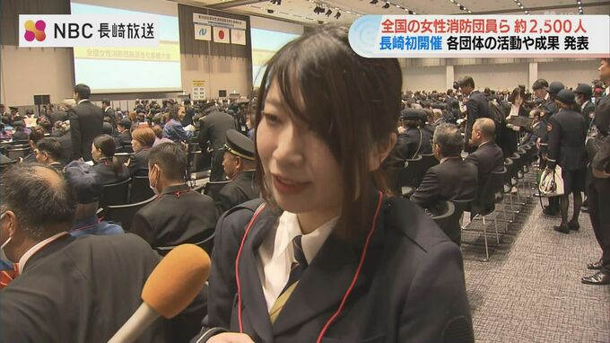 全国から女性の消防団員が一堂に集う大会が長崎市で初めて開かれ、日頃の活動や成果の報告などが行われました。