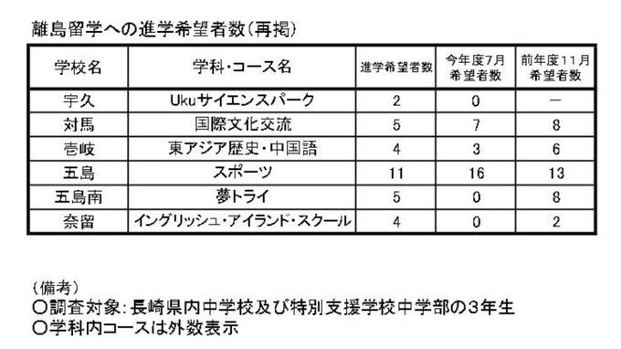 6校が実施している離島留学への進学希望者数は、五島高校のスポーツが最も多く11人となっています。