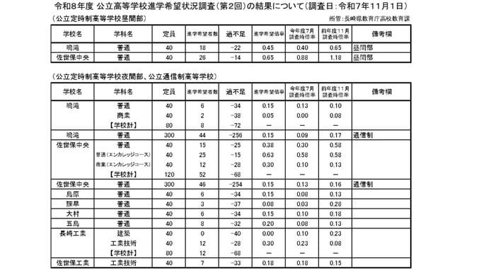 定時制と通信制の進学希望倍率は、すべて「1」を下回っています。