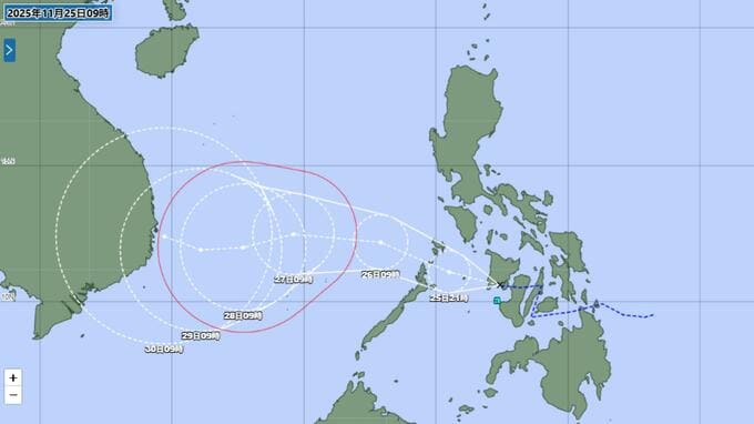 フィリピン付近にある熱帯低気圧が、まもなく台風へと発達する見込みです。今後は暴風域を伴いながら西へ進む予想となっています。