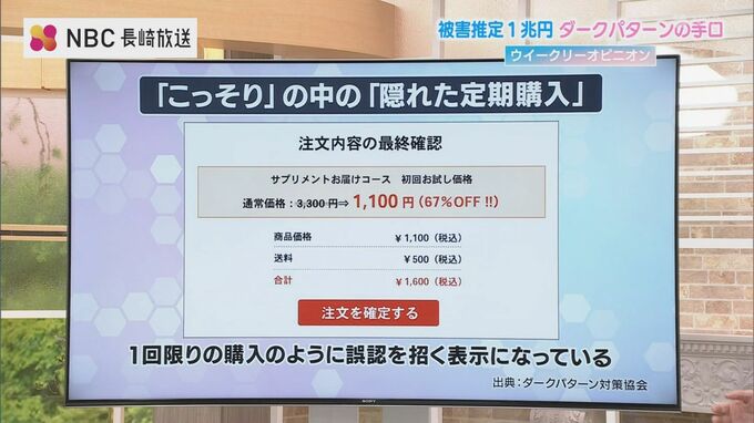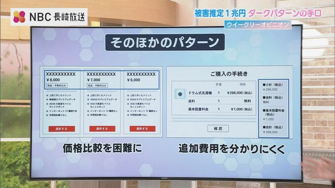他にも、3つのプランのうち一つだけ税抜き価格で表示し、価格比較を難しくする「妨害」や、商品代金以外の郵送料や手数料などの追加費用を最終申込段階で初めて表示する「こっそり」など、私たちが気づきにくい形で、財布のひもを緩めさせようとしているのです。