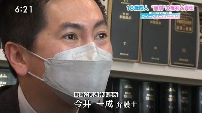 音崎陽合同法律事務所・今井一成弁護士「18歳過ぎたから直ちに大人と同じ判断能力とは必ずしもなりません。判断力不足につけこんで契約するという輩が出てくる、そこが怖いですね」