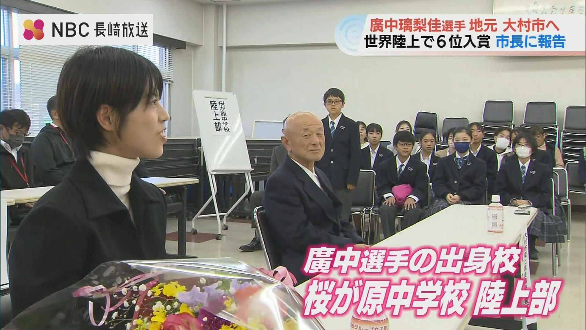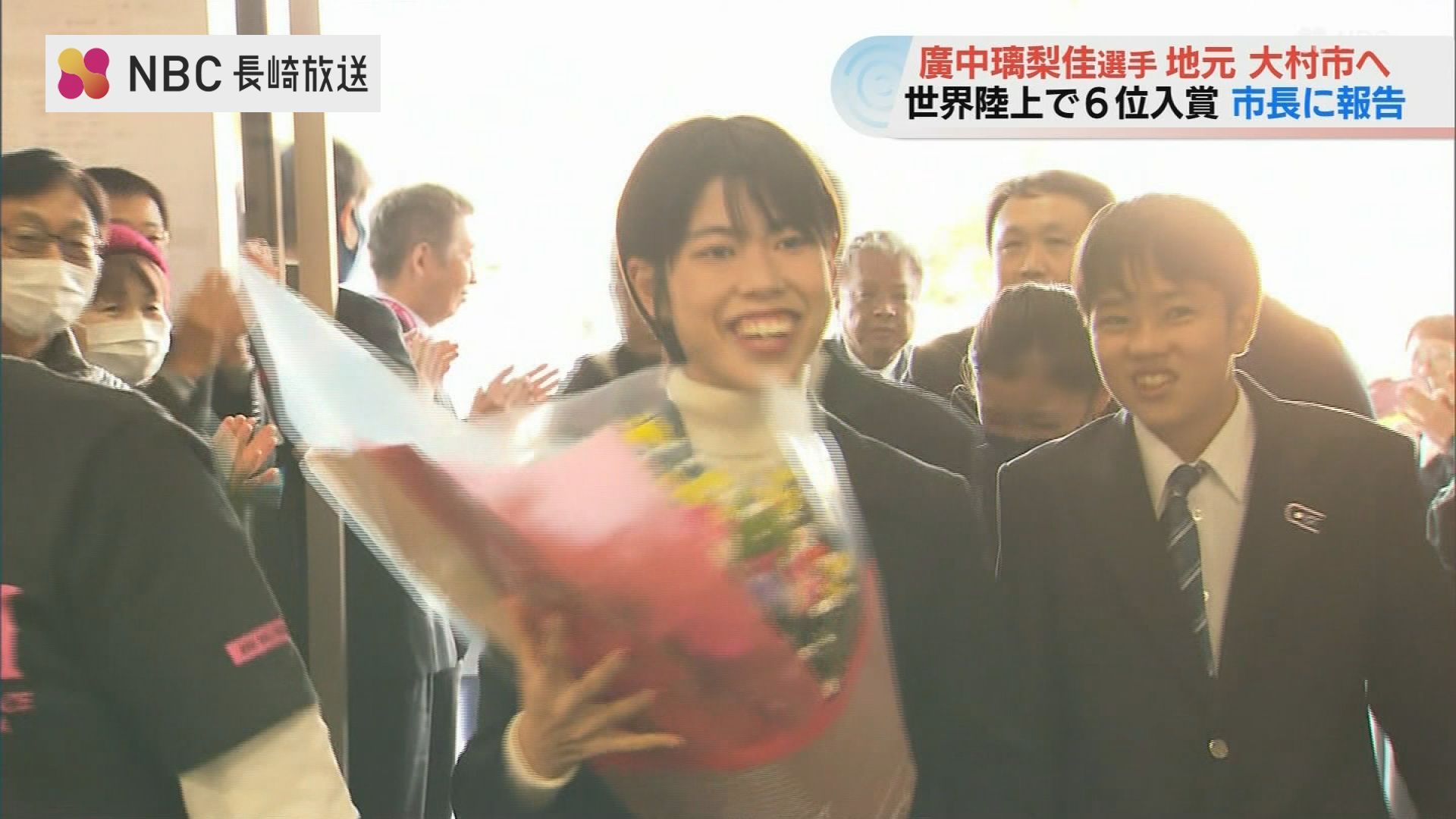 東京世界陸上女子1万メートルで6位入賞を果たした廣中璃梨佳選手が9日、地元の大村市に帰ってきました。