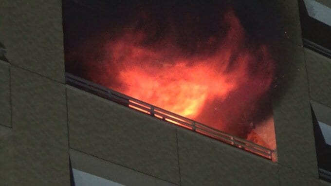 9階にある火元の部屋には、親子3人が住んでいて40代の男性が煙を吸い病院に搬送されました。